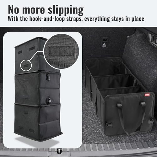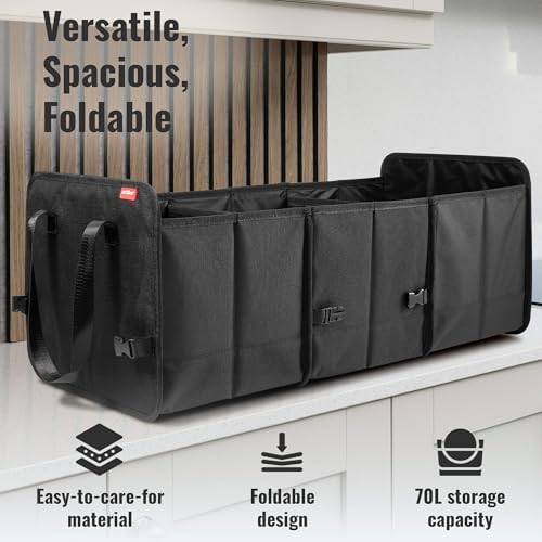 ✅ Elastyczne dopasowanie: Trzy duże komory, oddzielone za pomocą dwóch elastycznych ścianek działowych, zapewniają optymalny przegląd w składanej torbie do bagażnika. Dzięki temu łatwo zorganizujesz wszystkie przedmioty, a ich szybki dostęp będzie możliwy w każdej sytuacji.