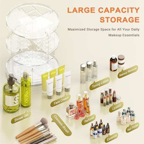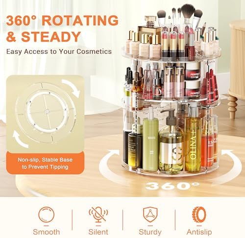 ✅ Obrót o 360°: Dzięki stabilnej podstawie, organizer może cicho i płynnie obracać się o 360 stopni. To oznacza, że w każdej chwili masz łatwy dostęp do wszystkich swoich kosmetyków, bez potrzeby przeszukiwania całego wnętrza.
