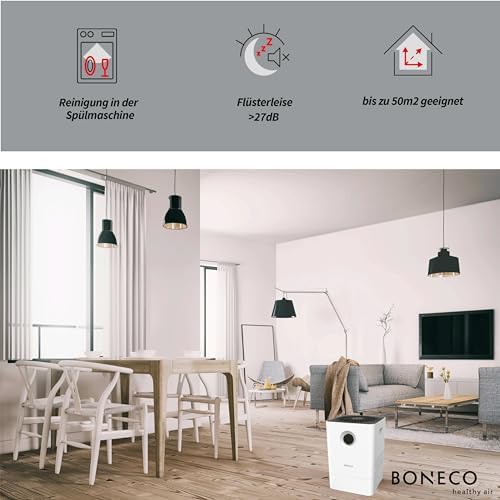 Filtracja pyłków: Dla osób cierpiących na alergie, skuteczna filtracja pyłków roślinnych oraz innych alergenów jest niezwykle istotna. BONECO W200 spełnia te wymagania, skutecznie eliminując cząstki, które mogą wywoływać reakcje alergiczne.