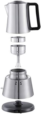 Ekspres Cloer 5928 to urządzenie o wymiarach 17 x 17 x 27 cm i wadze 1,04 kg, co czyni go lekkim i łatwym w przenoszeniu. Posiada pojemność 1422 mililitrów, co wystarcza na przygotowanie do 6 filiżanek espresso. Jego moc wynosi 365 W, a napięcie zasilania to 230 V. Ekspres wykonany jest z wysokiej jakości stali nierdzewnej, co zapewnia nie tylko estetykę, ale także wytrzymałość. Dodatkowo, dzięki funkcji automatycznego wyłączania, użytkownik może być spokojny o bezpieczeństwo i oszczędność energii.