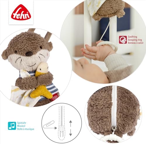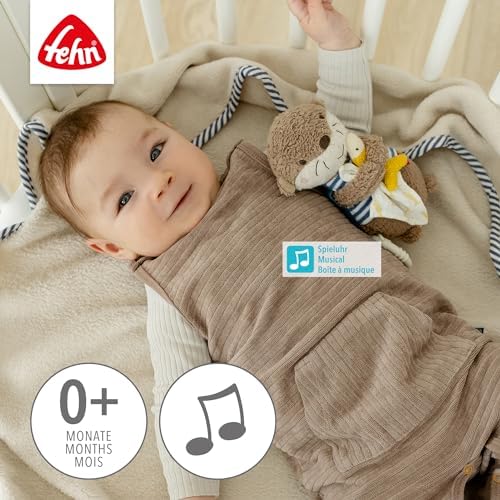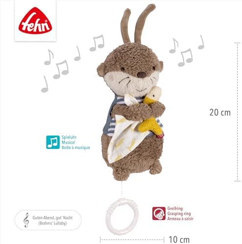 Fehn Mini pozytywka wydra – przytulanka i pomoc w zasypianiu: pozytywka z delikatną melodią „Kołysanka Brahms” uspokaja w każdej sytuacji – dla niemowląt i małych dzieci od 0+ miesiąca życia