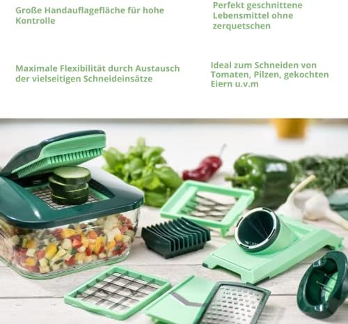 Wszechstronność: Zestaw zawiera różnorodne wkładki do krojenia, co umożliwia przygotowanie średnich i dużych kostek, plasterków, pasków oraz Juliettis. Dzięki temu możesz dostosować sposób krojenia do swoich potrzeb i preferencji.