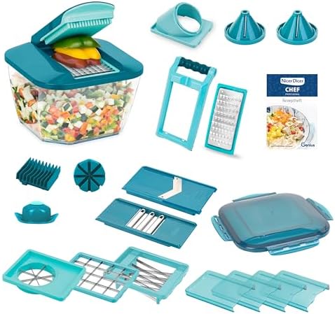 Nicer Dicer Chef Professional to niezwykle wszechstronna krajalnica do warzyw, która zrewolucjonizuje sposób, w jaki przygotowujesz posiłki. Dzięki swojej innowacyjnej konstrukcji i zaawansowanej technologii, ten produkt jest idealny dla każdego, kto pragnie zaoszczędzić czas i wysiłek podczas gotowania. Bez względu na to, czy jesteś zapalonym kucharzem, czy osobą, która sporadycznie gotuje, Nicer Dicer Chef Professional z pewnością spełni Twoje oczekiwania, oferując szereg funkcji, które uczynią przygotowanie posiłków przyjemnością.
