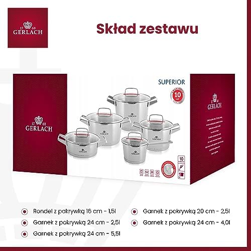 Gerlach Superior Zestaw Garnków składa się z 10 elementów, które obejmują: