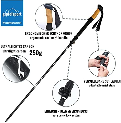 ✅ Stabilność i ochrona stawów: Kij trekkingowy gipfelsport wykonany jest z wysokiej jakości włókna węglowego, co zapewnia jego wytrzymałość oraz odporność na uderzenia. Dzięki temu, przy każdym kroku możesz być pewny, że Twój kij nie zawiedzie Cię, a dodatkowo, jego amortyzacja skutecznie chroni Twoje stawy podczas wchodzenia i schodzenia.