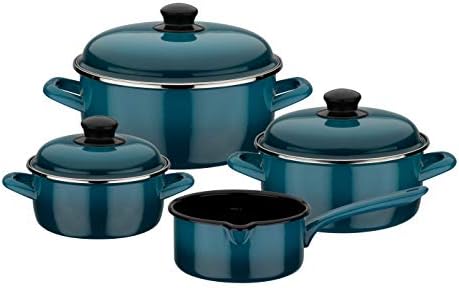 Zestaw garnków emaliowanych GSW 190107 Blue Shadow to wyjątkowy produkt, który z pewnością zadowoli każdego miłośnika gotowania. Zestaw składa się z 7 części, które są nie tylko funkcjonalne, ale również estetycznie zaprojektowane, co czyni je idealnym wyborem do każdej kuchni. Dzięki zastosowaniu wytrzymałej emalii stalowej, garnki te są odporne na zarysowania i przecięcia, co sprawia, że będą służyć przez długi czas. Dodatkowo, brak niklu w ich składzie sprawia, że są one bezpieczne dla osób z alergiami. Zestaw nadaje się do wszystkich rodzajów kuchenek, w tym indukcyjnych, co czyni go wszechstronnym rozwiązaniem dla każdego kucharza.