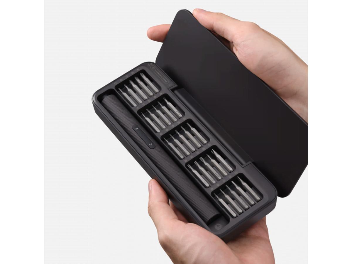 Zestaw elektrycznego precyzyjnego wkrętaka łączy 25 końcówek ze stali S2, tryby automatyczny/manualny, antypoślizgową aluminiową obudowę, wbudowany magnesownik, obsługę jednym przyciskiem oraz zasilanie akumulatorowe dla precyzyjnych mikrozadań.Kompaktowy lecz mocny Electric Precision Screwdriver Kit sprawdza się przy projektach DIY, naprawach elektroniki i skomplikowanym rękodziele, zapewniając wygodne użytkowanie.25 końcówek ze stali S2 obejmuje końcówki Phillips, Torx, płaskie, sześciokątne, Pozidriv, kwadratowe i zabezpieczające.Tryby automatyczny i manualny oraz przycisk zmiany kierunku ułatwiają przełączanie stylów wkręcania.Wbudowany magnesownik poprawia chwyt końcówek na mikrośrubach.Akumulator ładowany przez USB-C ma dwukolorowy wskaźnik chroniący zdrowie baterii.Trwałe anodowane końcówki i antypoślizgowa pokrywa z aluminium zapewniają poczucie jakości.Kompaktowa, przenośna i lekka konstrukcja utrzymuje zestaw gotowy do codziennego użycia.Gotowość do pracy od razu zapewnia precyzję w szczegółowych zadaniach.