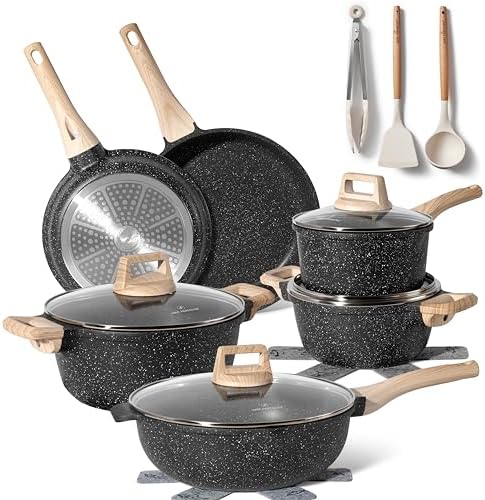 ✅ Nieprzywierająca powłoka granitowa: Dzięki zastosowaniu wysokiej jakości materiałów, nasze garnki i patelnie charakteryzują się doskonałymi właściwościami nieprzywierającymi. Oznacza to, że możesz smażyć, gotować i piec z minimalną ilością tłuszczu, co jest korzystne dla Twojego zdrowia.