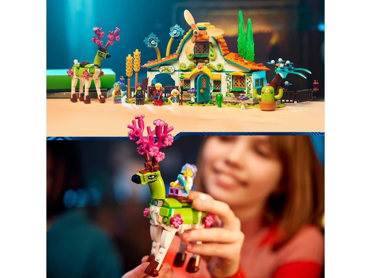 Zestaw LEGO Dream Creatures Stable składa się z 681 elementów, co daje mnóstwo możliwości budowania. Dzieci mogą stworzyć stajnię z otwieranymi drzwiami i oknami, a także działający wiatrak. W zestawie znajduje się również kwiatowy jeleń, który ma w pełni ruchomą głowę i nogi. Dzieci mogą ozdobić jelenia jako pegaza lub strażnika lasu, co dodatkowo rozwija ich wyobraźnię.