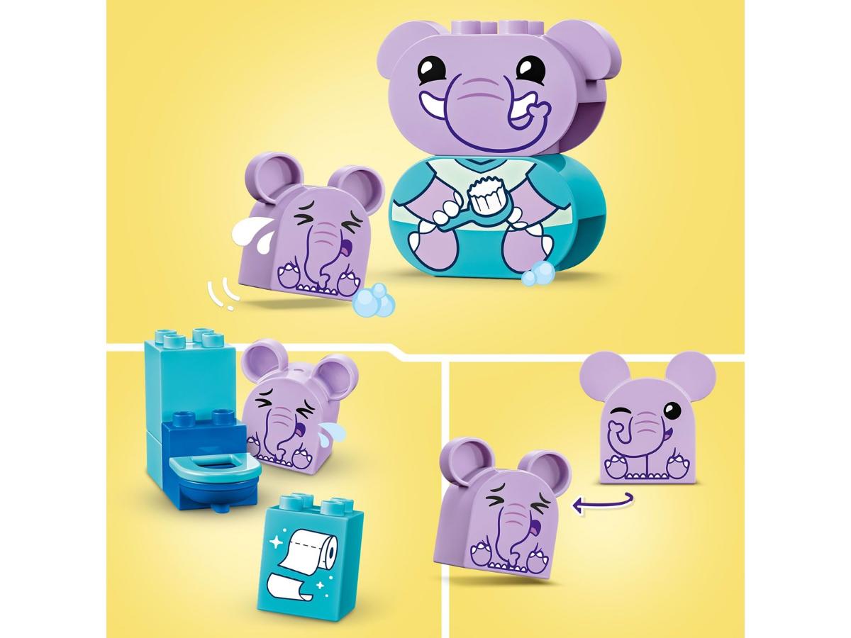 W zestawie znajdują się dwie figurki słoni: rodzic i dziecko oraz elementy do zbudowania wanny, prysznica i toalety. Dzięki interaktywnej zabawie, dzieci mogą odgrywać różne scenariusze związane z kąpielą, co pozwala im lepiej zrozumieć swoje uczucia. Zestaw składa się z 15 elementów, co zapewnia wiele możliwości twórczej zabawy.