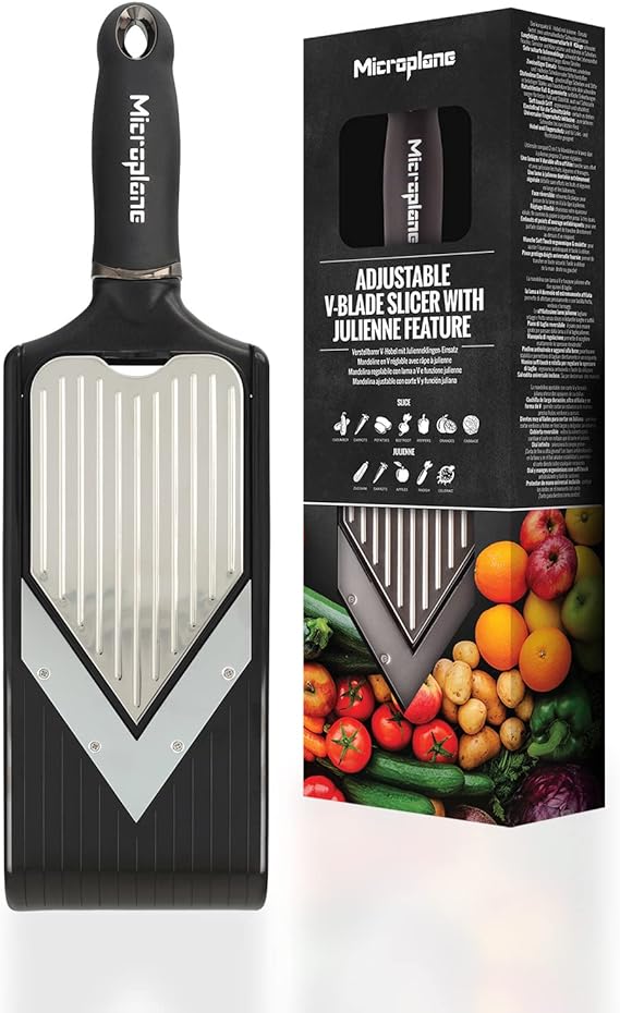 ✅ Wielofunkcyjność: Regulowana szatkownica Microplane oferuje dwie różne funkcje cięcia, co czyni ją niezwykle wszechstronnym narzędziem w kuchni. Możesz łatwo przełączać się między krojeniem w plastry i paski Julienne, co pozwala na przygotowanie różnorodnych potraw.