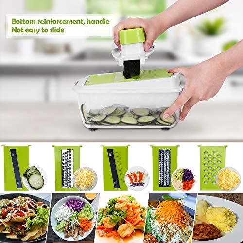 Wygodne przechowywanie: Mandolina została zaprojektowana z myślą o oszczędności miejsca. Po użyciu możesz łatwo przechować pokrojone warzywa w dołączonym pojemniku, co pozwala na utrzymanie porządku w kuchni.