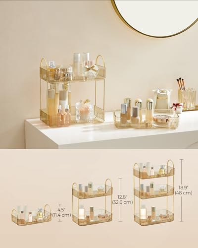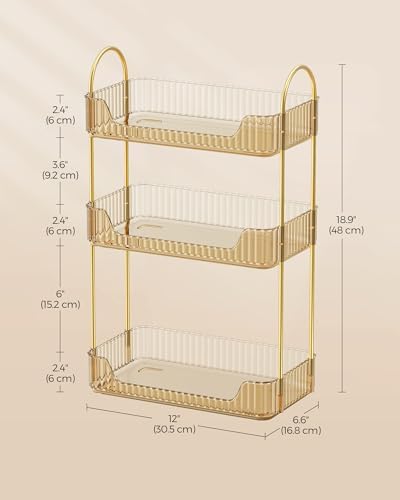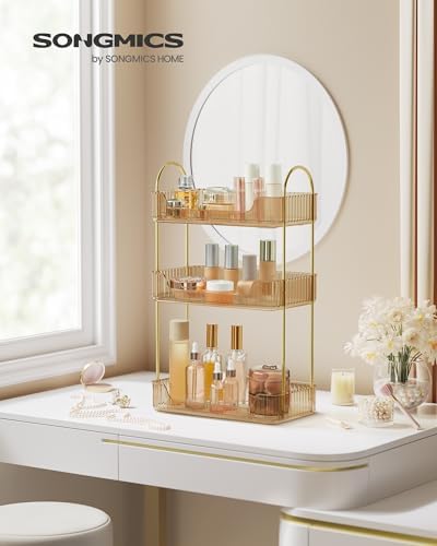 SONGMICS Organizer na makijaż to nie tylko praktyczny, ale i estetyczny element wyposażenia każdej toaletki. Wykonany z platerowanego metalu oraz wysokiej jakości tworzywa sztucznego PET, łączy w sobie styl i trwałość, dzięki czemu doskonale wpisuje się w nowoczesne wnętrza. Jego 3-poziomowa konstrukcja pozwala na efektywne zagospodarowanie przestrzeni, a elegancki kolor szampańskiego złota dodaje mu szyku. To produkt stworzony z myślą o osobach, które cenią sobie porządek i estetykę w codziennym życiu. Idealnie nadaje się zarówno dla profesjonalistów, jak i dla amatorów makijażu, którzy pragną mieć swoje kosmetyki zawsze pod ręką.
