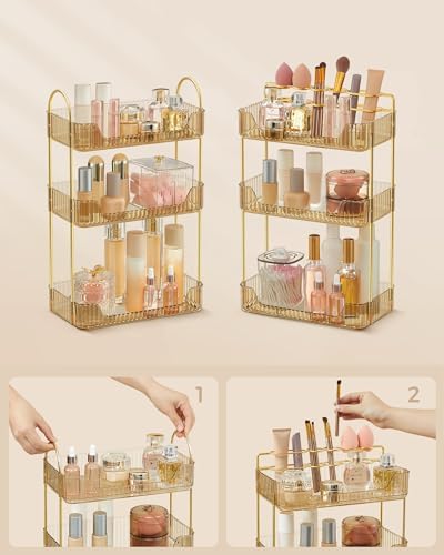 ✅ Przestronne, ale oszczędzające miejsce: Dzięki 3-poziomowej konstrukcji, organizer umożliwia przechowywanie różnych akcesoriów kosmetycznych, od makijażu po biżuterię. Wykorzystując pionową przestrzeń, możesz zaoszczędzić miejsce na toaletce, co jest szczególnie ważne w małych łazienkach czy sypialniach.