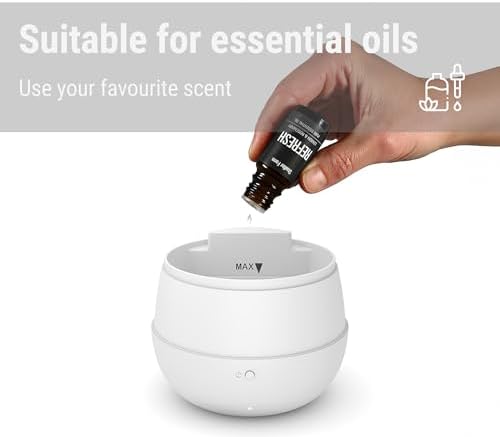 Optymalny zapach: Dyfuzor został zaprojektowany tak, aby dzięki najdelikatniejszej mgiełce, ulubiony zapach rozprowadzał się równomiernie w całym pomieszczeniu. To sprawia, że możesz cieszyć się aromaterapią na najwyższym poziomie.
