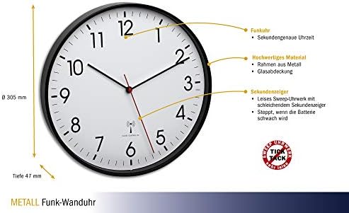 Precyzyjny mechanizm radiowy: Dzięki zastosowaniu mechanizmu radiowego, zegar ścienny TFA Dostmann zapewnia zawsze dokładny czas. Oznacza to, że nie musisz martwić się o ręczne ustawianie zegara, a jego czas będzie zawsze zsynchronizowany z atomowym czasem. To idealne rozwiązanie dla osób, które cenią sobie punktualność i dokładność.