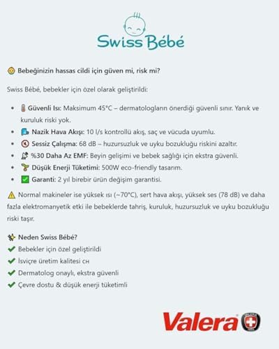 ✅ Minimalizacja elektro smogu: Valera Swiss Bebe 554.13 emituje do 30 procent mniej elektro smogu w porównaniu do standardowych suszarek, co pozytywnie wpływa na zdrowie i samopoczucie Twojego dziecka.