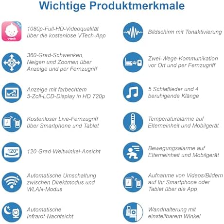 ✅ Obraz w jakości Full HD: Dzięki technologii 1080p, Vtech VM901-1W zapewnia wyraźny i szczegółowy obraz, który pozwala na dokładne obserwowanie dziecka. Możesz być pewny, że nic nie umknie Twojej uwadze.