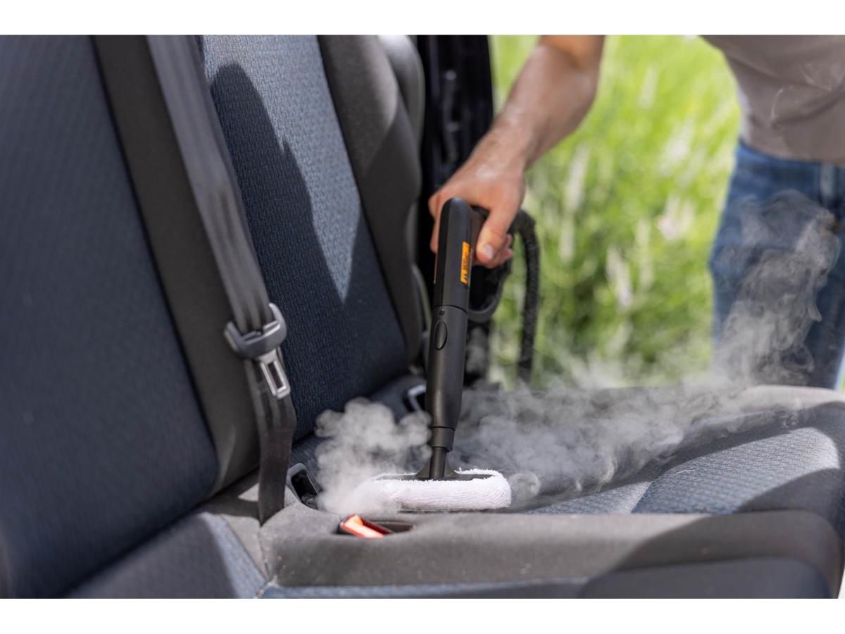 - Łatwość użycia – ergonomiczny wąż z pistoletem parowym.