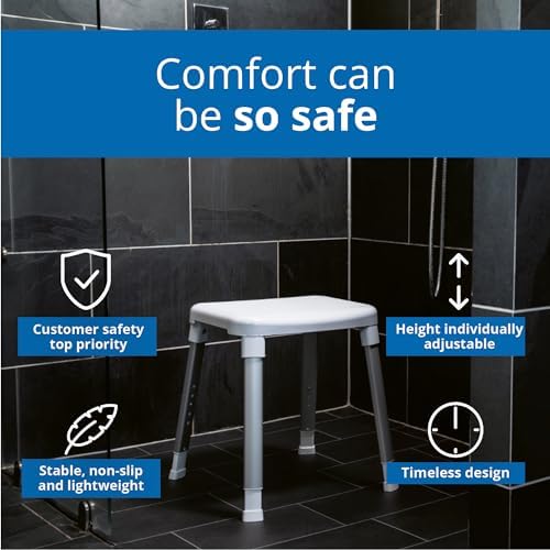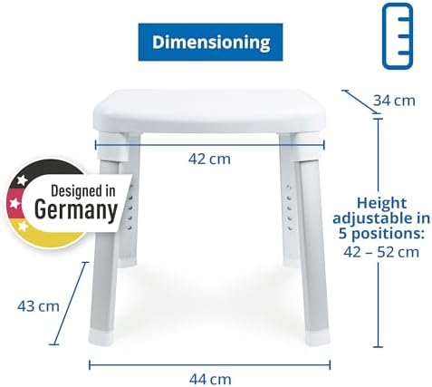 ✅ Bezpieczeństwo w łazience: Stołek wyposażony jest w antypoślizgowe siedzisko oraz nogi, co zapewnia stabilność i bezpieczeństwo, nawet w mokrym środowisku. Dzięki temu użytkownicy mogą czuć się pewnie podczas korzystania z prysznica czy wanny.