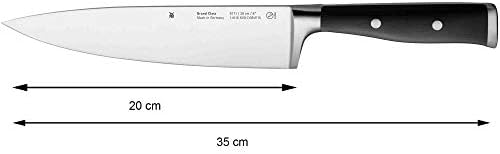 Zestaw noży WMF Grand Class zawiera trzy kluczowe narzędzia, które są niezbędne w każdej kuchni. Nóż szefa kuchni o długości 20 cm jest idealny do krojenia dużych kawałków mięsa, warzyw oraz ziół. Nóż użytkowy o długości 14 cm sprawdzi się w codziennych zadaniach, takich jak krojenie chleba czy serów. Nóż do warzyw o długości 9 cm natomiast, doskonale nadaje się do precyzyjnego krojenia i obierania warzyw. Dzięki temu zestawowi, każda czynność kulinarna staje się łatwiejsza i bardziej efektywna.